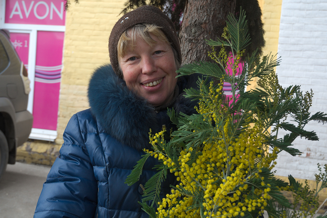 – У нас роскошная мимоза из Абхазии. Продаем дешевле чем на рынке – 120 гривен за ветку. Пусть у людей будет праздник, пусть мужчины радуют своих женщин, – говорит Майя, продавец у входа на рынок.