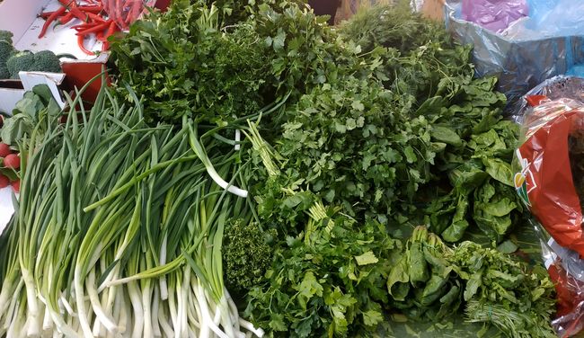 Что касается овощей, чувствуется наступление весны. Появились местные и из других регионов Украины огурчики, и помидоры, израильский свежий редис, зеленый лук, турецкий сладкий перец и самые разнообразные пряные травы.
