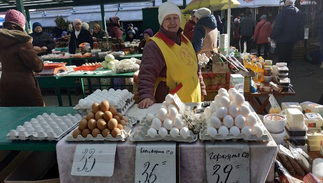 А вот цены за десяток куриных яиц в грн. на рынке в среднем на 10 гривен выше, чем в продовольственных супермаркетах: