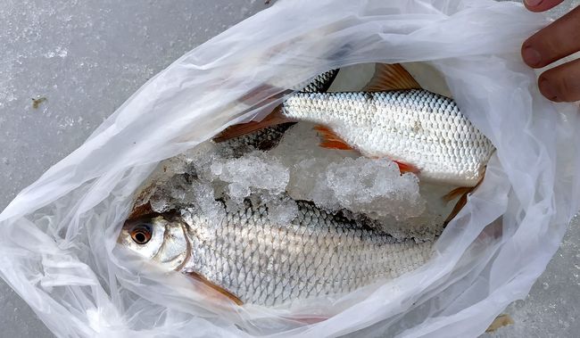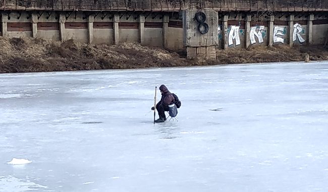 Мы побывали прямо на льду, недалеко от пешеходного моста, чтобы пообщаться с рыбаками и посмотреть на улов.