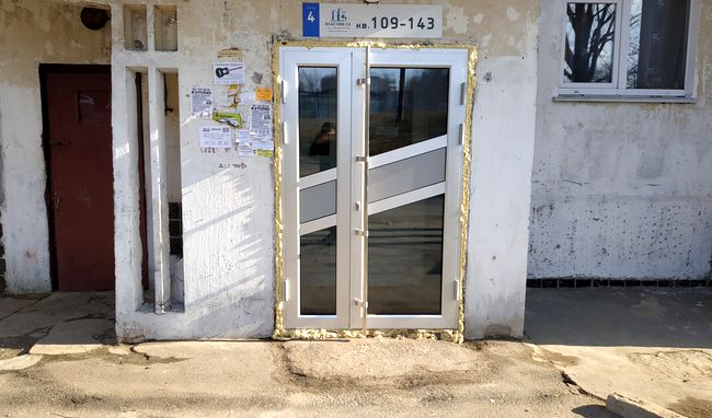 В девятиэтажке на Доценко в подъездах установили стеклянные двери