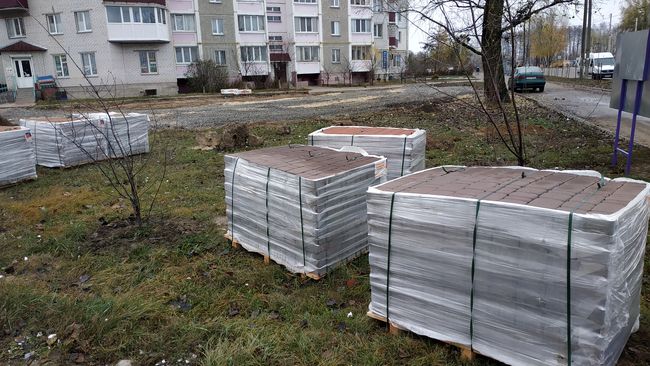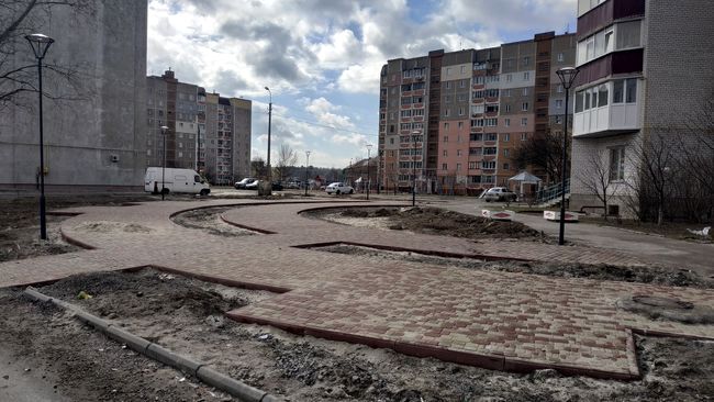 - Работы по благоустройству участков между домами №56-70 начались еще осенью прошлого года. Были завезены разного цвета кирпичики (фигурные элементы мощения) для тротуарных дорожек, выровнена территория, а в январе уже была произведена их укладка.