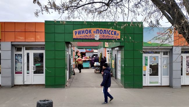 Через дорогу от рынка «Полесье» тоже кипит торговля: в выходные дни на рынке, как правило, проходит ярмарка. Здесь всегда большой выбор копченых и вареных колбас, ветчины и буженины, твердых и мягких сыров, молочной продукции из молокозаводов и фермерских хозяйств Ични, Коропа, Куликовки, Сновска Черниговской области.