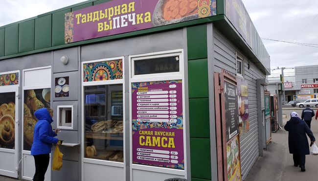 Всегда есть покупатели возле павильончика с «Тандырной выпечкой». Потому что, вкусную самсу здесь подают прямо со стенок раскаленного тандыра. Готовят ее с самыми разными начинками: с сыром, красной рыбой, овощами и даже охотничьими колбасками. Цены – от 18 до 24 гривен.