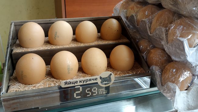 В павильоне «Наше Ряба» появились куриные яйца из села Крупец Ровенской области по 25.90 грн. за десяток. Домашние – по 30 гривен за десяток.