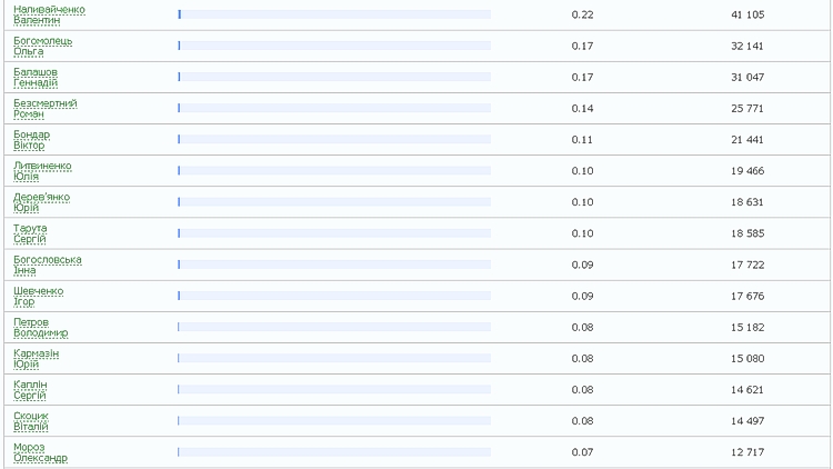 Результаты опросов избирателей таковы: по финальным данным национального экзит-пола, за кандидата в президенты, шоумена Владимира Зеленского проголосовали – 30,6%, за действующего главу государства Петра Порошенко – 17,8%, за лидера ВО "Батькивщина" Юлию Тимошенко – 14,2%.