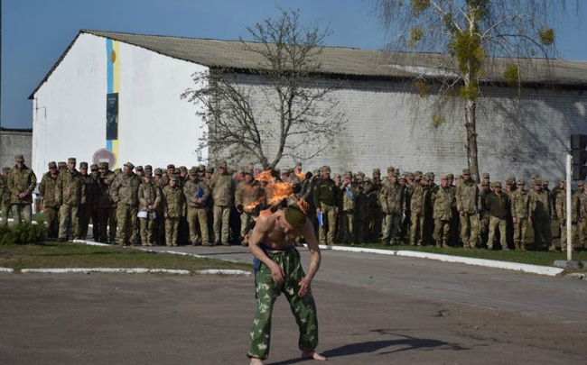 Переведення техніки на весняно-літній режим експлуатації важка та марудна справа. З фантазією до цього підходять військовослужбовці 1-ї окремої Сіверської танкової бригади, що у селищі Гончарівське на Чернігівщині - щоб підбадьорити особовий склад, командування частини влаштовує імпровізовані концерти. Сьогодні, наприклад, перед побратимами з фаєр-шоу виступив "Шаман" - один з вояків механізованого батальйону.