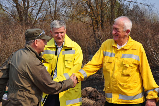Директор Глобального центру моніторингу пожеж Йохан Георг Голдаммер високо оцінив старання лісівників Остерського військового лісгоспу. На території, яку обслуговує підприємство, німецький професор провів практичний тренінг для працівників. Під час польового виїзду лісові охоронці штучно випалювали ділянку та навчались управляти вогнем.