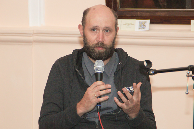 Свой рассказ он сопровождал показом слайдов, демонстрацией различных барабанов и звуков, которые они издают. Показывал технику игры на этом инструменте, рассказывал о многочисленных старинных обрядах с использованием барабанов.