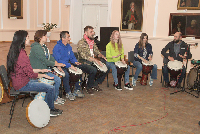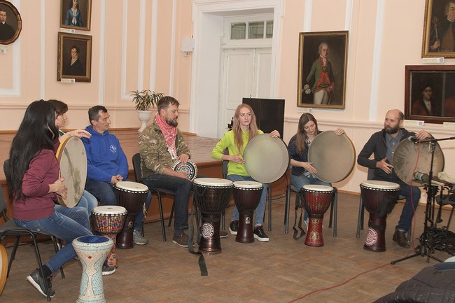 Композиции на всевозможных барабанах и прочих этнических музыкальных инструментах звучали под сводами выставочного зала Черниговского областного художественного музея имени Григория Галагана. Музыканты рассекретили звуки обрядов вызова дождя и солнца, и даже показали воздействие ритмов и звуков барабана на психику человека.