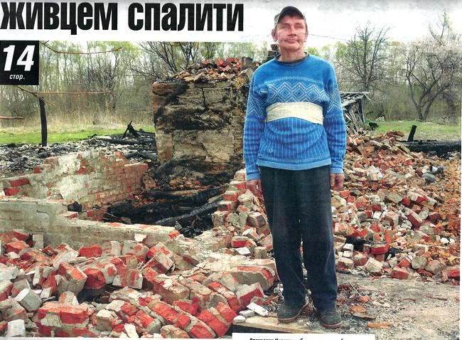 А тим часом над моєю хатою заграва. Дві пожежні машини приїхали, люди збіглися. Брат мій вже потім розповів, що Славик і Коля, доки не загасили, були. Казали про мене: «Отут треба на дивані шукати тіло». А тіла не виявилося. Я до матері ледь добрів, на інший край села. Потім мене в обласну лікарню відвезли. Зашивали, крапельниці ставили. Слідчі до мене приїздили. Я все, як було, розповів. їх трьох забрали, потім усіх відпустили.