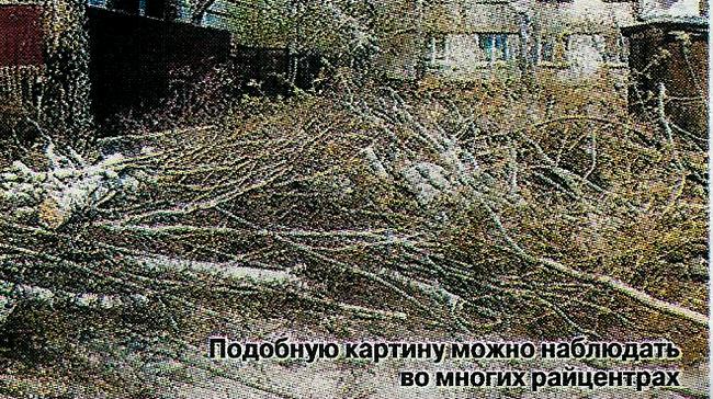 Фактически — это территория городских советов (в сёлах ветки идут на дрова), поэтому убирать ее должны коммунальщики. Однако они просто не успевают. Жители, которых раздражают лежащие неделями кучи хвороста, пытаются вывезти их своим транспортом. Но на городских свалках веток от частных лиц не хотят брать даже за плату, так как они занимают много места.