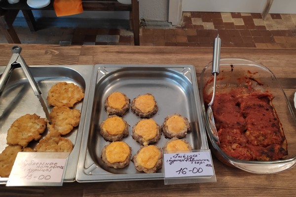- Еды не готовим с излишком, стараемся заготавливать столько, чтобы за день все расходилось. Варим 5 литров супа и 5 борща, за день продаем около 200 единиц выпечки. То, что остается – съедаем сами – у нас команда – со мной 6 человек, - рассказывает Юлия.