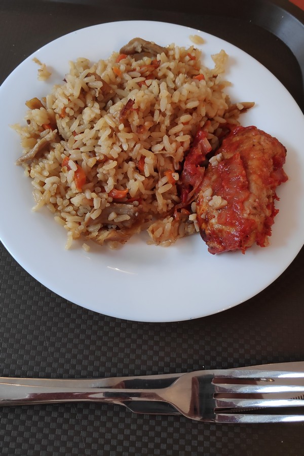 Взяли на пробу плов с курицей, который нахваливала продавец (8 грн. за 100 грамм) и один гречаник (14). Плов по вкусу похож на домашний, гречаник очень нежный – таких не заметишь и 5 штук съешь. Пиццу с вареной колбасой и булочки со сгущенкой, с твердым сыром, с курицей – упаковали с собой – за все отдали 68 грн.. Булочками, как оказалась хозяйка гордится не зря – тесто достаточно нежное, больше всех понравилась булочка с твердым сыром, посыпанная кунжутом. У пиццы тесто не резиновое, а как бы воздушное.