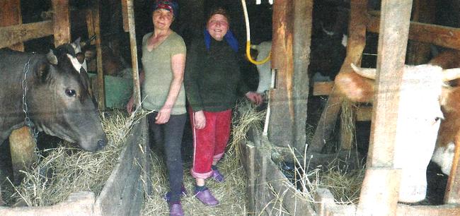 Оля Давид з Носівки і Валя Ковальчук з Волині (село Любешів). Валя їздить на заробітки в Білорусь на ферму, де 120 корів. Повахтово: 15 діб там працює, а 15 вихідні, їде в Шалойки.