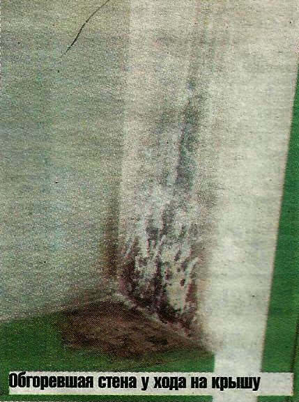 11 марта возле хода на чердак, на стене, были видны следы от огня, оставалась копоть.