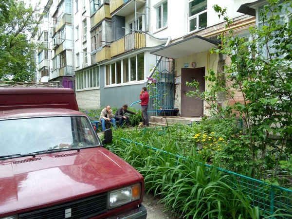 В подтверждение своих слов Игорь Будник выслал фото ремонтной бригады ЖЭКа №13, которые вместо работы по ликвидации аварии лузгают семечки на лавочке возле подъезда.