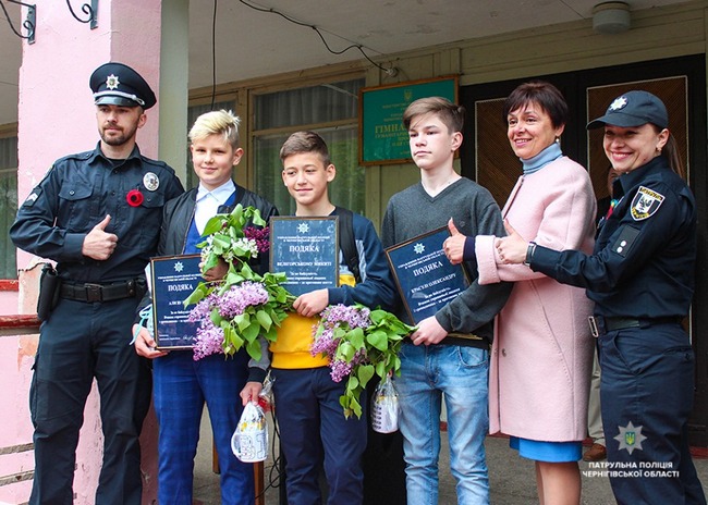 8 мая во дворе черниговской гимназии №31 началась торжественная линейка для средних классов. Никто из школьников даже не догадывался, что ее виновниками являются их друзья — семиклассники Никита Велигорский и Александр Красуля и шестиклассник Никита Алиев. Не подозревали об этом и сами ребята. Только когда вперед вышли патрульные полицейские, поняли, что сейчас будут говорить о них, — 23 апреля трое друзей спасли раненому мужчине жизнь.