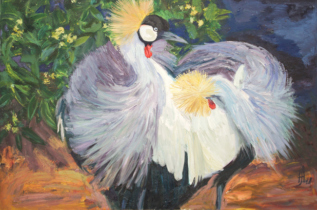 Черпая вдохновение из путешествий, документальных фильмов о дикой природе, а также из фотографий и энциклопедий, художница на своих полотнах демонстрирует птичий мир во всем его богатстве и многообразии.