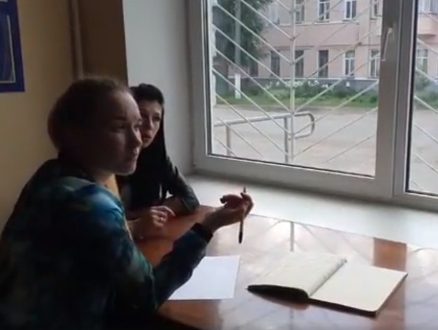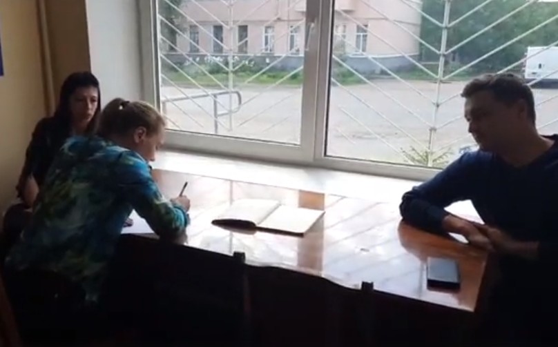 На фото Оксана Косовец пишет заявление в местной прокуратуре