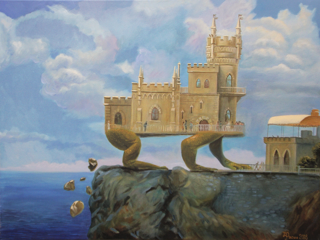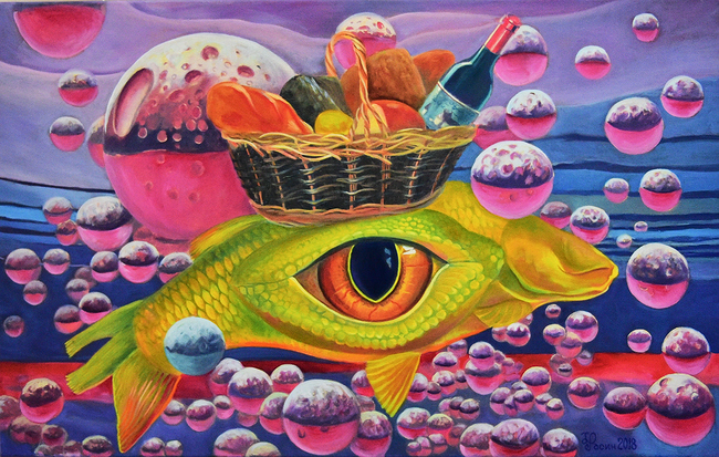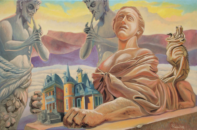 – На мой взгляд, все художники делятся на две большие группы. Одна ищет в своей деятельности красоту и гармонию, а вторая ищет смысл. Вот я отношу себя к той категории, которая ищет смысл. Для меня важна красота, важна гармония, но на первом месте для меня смысл. Поэтому каждая моя работа – это ребус. Я закладываю в нее несколько уровней смысла. Получается трудно, не всегда это воспринимается на ура. Я вошел как бы в такой спор с основателями сюрреализма. То течение, которое я пытаюсь предъявить зрителю, я назвал семантический сюрреализм. Принципиальное его различие с классическим сюрреализмом – там делается это все на уровне подсознания, а у меня тоже сюрреализм, но он продуманный. Каждая фигура, каждая деталь имеет свое семантическое значение.