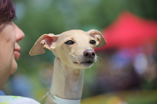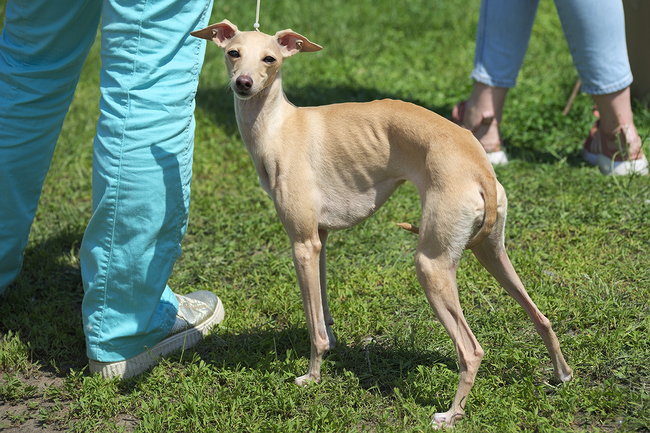 Итальянская левретка. Очень преданная собака, и всегда слушает, что ей говорят. На выставке она была единственной в ринге.
