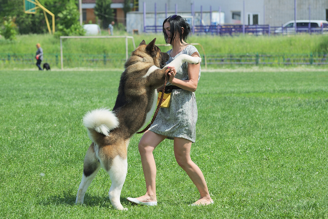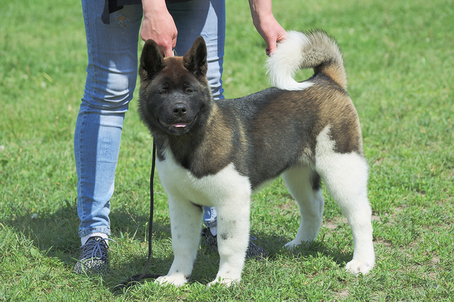 Американская акита. Щенок, ему всего 4 месяца, и он впервые участвует в выставке. Порода выведена в Японии, и в древности использовалась для охоты на медведя.
