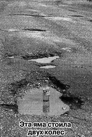 Метрах в 20 от места нашей вынужденной остановки увидели на обочине чьи-то поломанные колпаки от колес. Видно, не одни мы такие «счастливчики». Ожидая, пока нам подвезут запасные колеса (с собой имели только одно), наблюдали за водителями, проезжавшими этот злосчастный участок трассы. Сразу было видно, кому из водителей эта дорога знакома, а кому нет — первые объезжали ямы по обочине, а вторые пытались маневрировать между ямами, чтобы не составить нам компанию. Единственное, что радовало, — некоторые водители останавливались, предлагая помощь.