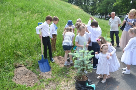 У школі започаткували гарну традицію – висадження учнями молодих дерев. Дві молоді ялинки висадили на подвір’ї школи учні молодших класів. У школі дбають про збереження навколишнього середовища, і навчають дітей дбати про нього.