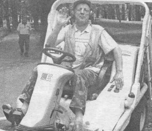 В среду, 8 июля, в обед на Валу траву стригла новая необычная техника — машина не машина, трактор не трактор. На нем мужик в наушниках ездит. Люди останавливались и по несколько минут рассматривали чудо-устройство.