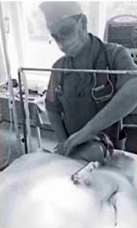 - Коли я розкрив грудну клітку, то крові у плевральній порожнині було обмаль. Ще мав надію, що ніж не потрапив у саме серце, але врешті пересвідчився, що поранення наскрізне. Після того, як вийняв ножа, кровотечі особливої не було, і вдалося ушити дві дірки, тішачись, що обійшлося малою кров’ю. Але вище, в стінці лівого шлуночка, помітив ще один лінійний поріз. Це був слід від другого удару ножем, про що й казав потерпілий перед операцією.