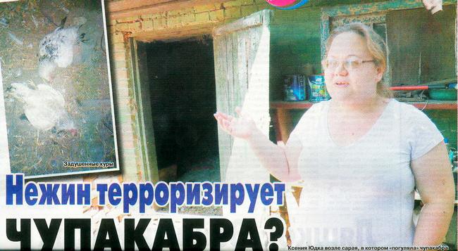 Опять все сходится на таинственной чупакабре! Кроме того, из количества «посещенных» дворов стало ясно - она не одна. Проанализировав местонахождение переполови-ненных хозяйств, нежинцы пришли к выводу, что «под прицелом» почти полгорода. Допускают: живут странные особи где-то в этом же секторе. И делятся догадками: