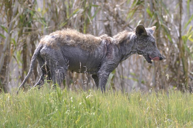 - Каких-то мелких деталей я, конечно, разглядеть не успел, потому что происходило все очень быстро. Мне оно скорее похоже, как уже говорил, на собаку. Вот только ноги выше, при этом передние немного меньше задних. Шерсть - серовато-коричневая, как у волка. Хвост тонкий, не очень длинный, не мохнатый. Морда похожа на собачью, но более вытянутая. Удивило, что бегает оно ну очень быстро. И еще — сколько его ни бил, ни одного звука не издало. Собака или лиса обязательно скулили бы...