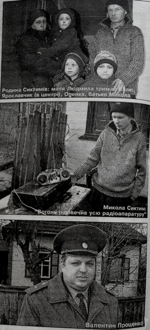 — Того дня ми з дружиною Людмилою та старшою донькою Оленою поїхали до Носівки у лікарню, — говорить Микола Сиктим, батько Валі та Ярослава. — Попросили односельця підвезти нас до райцентру, поки менші діти сплять. Думали, зробимо свої справи за пару годин, але довелося у місті затриматися. Йдемо близько третьої на автовокзал, аж там наша кума Ольга Коваль, якій хтось зателефонував із села на мобільний, кричить нам: „У вас хата горить!"