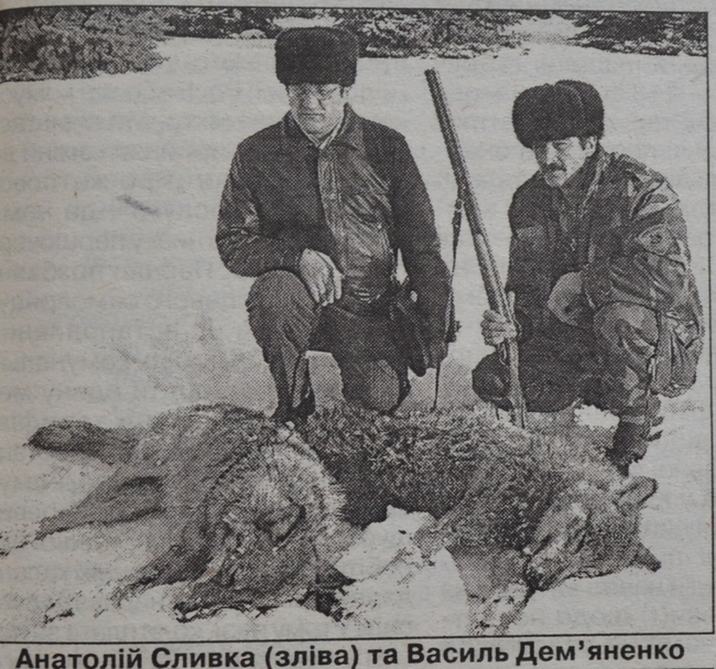 За словами Анатолія Сливки, бригада єгерів кілька днів вистежувала п’ятьох вовків, поки нарешті не вийшла на слід зграї. Чотирма зарядами картечі було убито трьох вовків. Двом хижакам вдалося прорватися попід прапорцями. Як вважає директор „Вершини", вовки завдають серйозних збитків лісовому та сільському господарству, адже один вовк за раз може з’їсти 8-10 кілограмів м’яса.