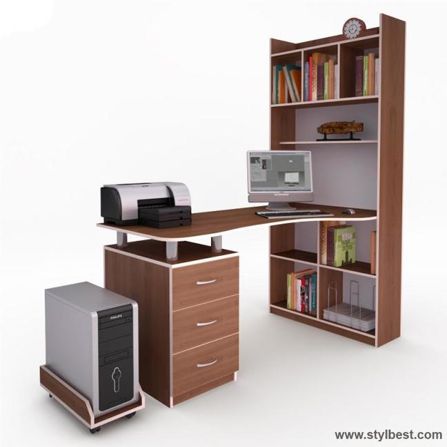 В магазине представлены и классические варианты, представляющие собой конструкцию, состоящую из столешницы, встроенной тумбы, отсека для СБ и выкатной полочки для клавиатуры, и модели, наделенные множеством дополнительных опций. О них нужно рассказать подробнее, ведь фактически при помощи комбинированных компьютерных столов можно создать домашний офис. Именно поэтому они столь популярны в Чернигове – их приобретают не только фрилансеры, но и студенты или родители для своих старшеклассников.