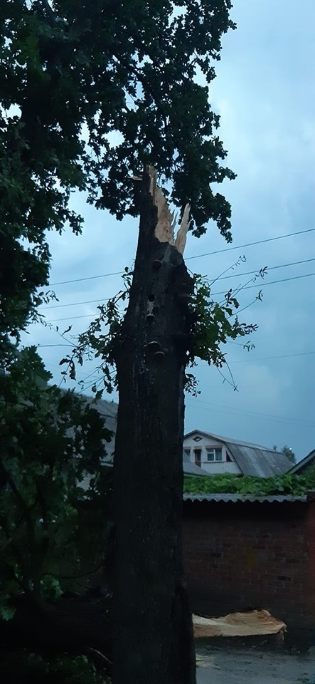 Сломило верхушку дубу в частном секторе, фото из соцсетей