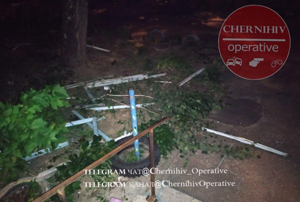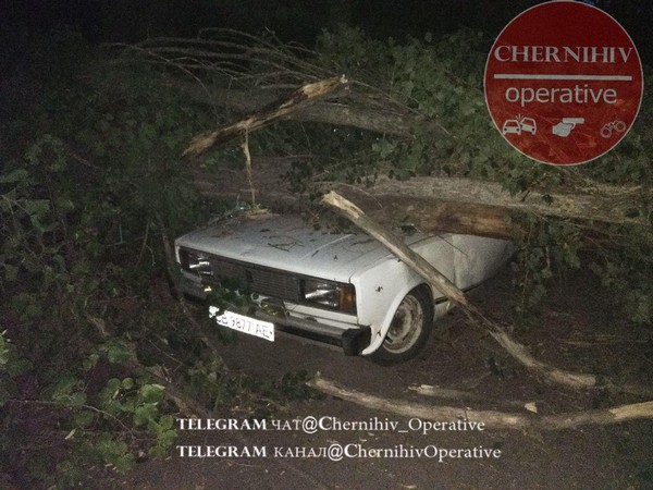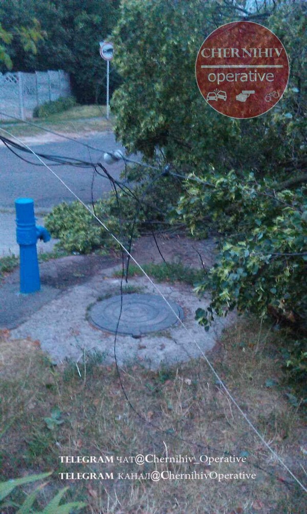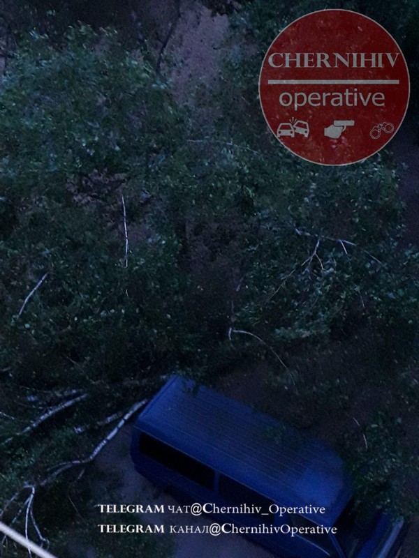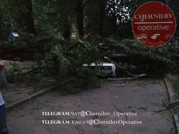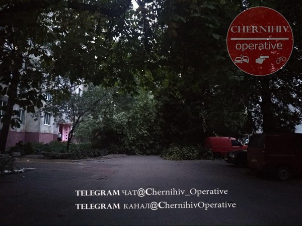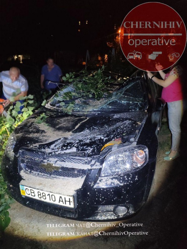 В разных районах города зафиксированы случаи, когда деревья вырывало просто с корнем, было повреждено частное имущество и коммунальное. Так, на ул.Доценко, 30а дерево упало на легковой автомобиль припаркованный у подъезда, та же участь постигла ВАЗ-2104 и на ул.Ивана Мазепы, 41, в районе 5-й школы разрушена остановка общественного транспорта, много деревьев поломало в привокзальном парке и на ул.Рокоссовского, рухнуло дерево на ул.1 Мая, 161, чудом уцелел автомобиль на ул.Шевченко, 16, последствия урагана зафиксированы также на ул.Любеческой и во дворе школы №29. Черниговцы делятся в соцсетях последствиями ветра, сообщается, что аналогичная ситуация была в Новгород-Северском и Славутиче Киевской области. Жители сообщают, что в разных районах не было света всю ночь – на Лесковице и ул.Иваны Мазепы, канал «Чернигов оперативный» разместил видео-сообщение о том, что в районе Подусовки, ближе к вокзалу горела электро-опора.