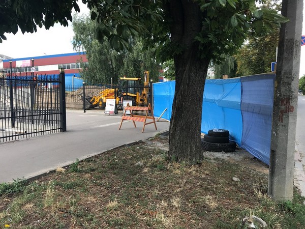 Полностью перекрытый тротуар со стороны рынка «Нива», предупреждающие знаки и работающая техника - именно такую картину можно наблюдать в настоящее время по ул. Строители сообщают, что здесь ведутся работы по обустройству автомобильного заезда на рынок.