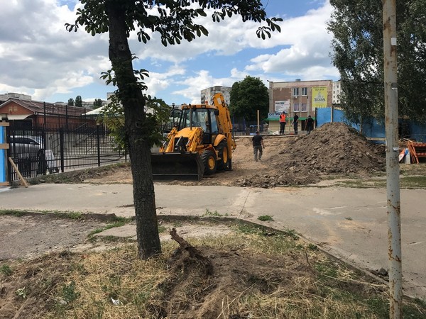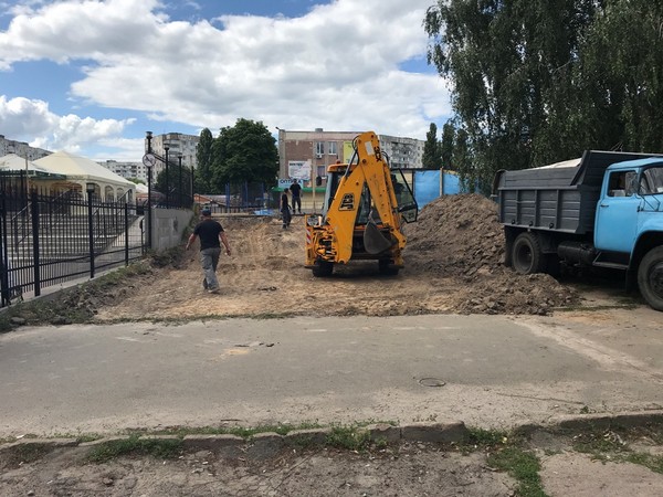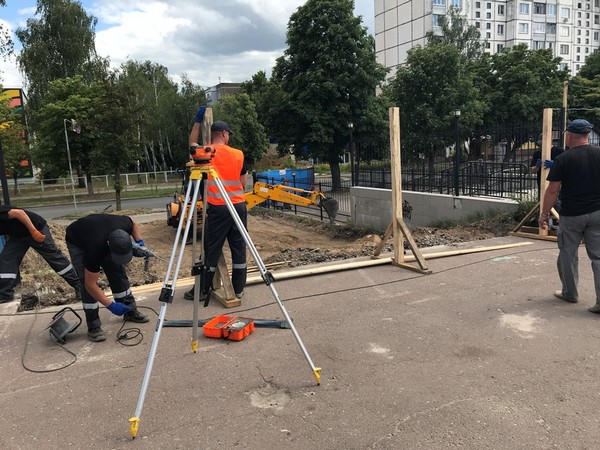 На "Ниве", со стороны ул. Всехсвятской, обустраивают автомобильный заезд