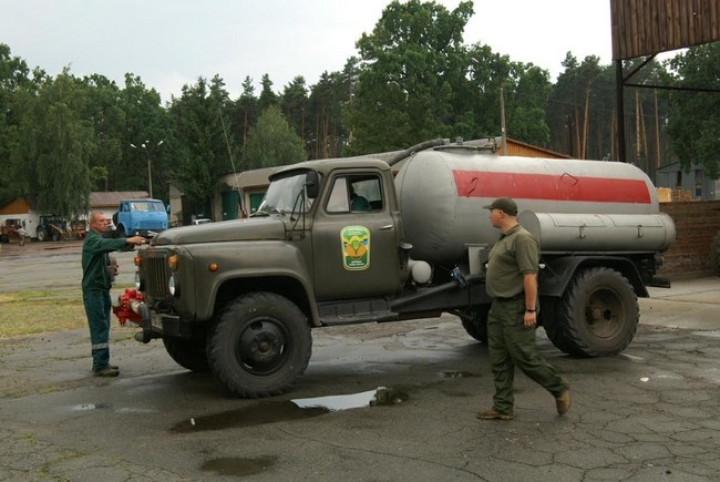 «У нас є все потрібне для гасіння лісових пожеж, починаючи від респіратора і закінчуючи бензопилою, – підключається до розмови лісничий Карпилівського лісництва Ігор Коханчук. – Ось, – показує на старенький ГАЗ-53, – переобладнали з водовозки на пожежний. Тут бочка на 3,5 тонни, більше бере, ніж пожежна – та 2,8 тонни. Єдине, що пожежна – це всюдихід, а «газон» не всюди може заїхати».