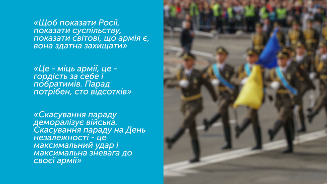 Відміна параду: “за” і “проти”. Журналісти запитали у 100 військовослужбовців в усіх регіонах