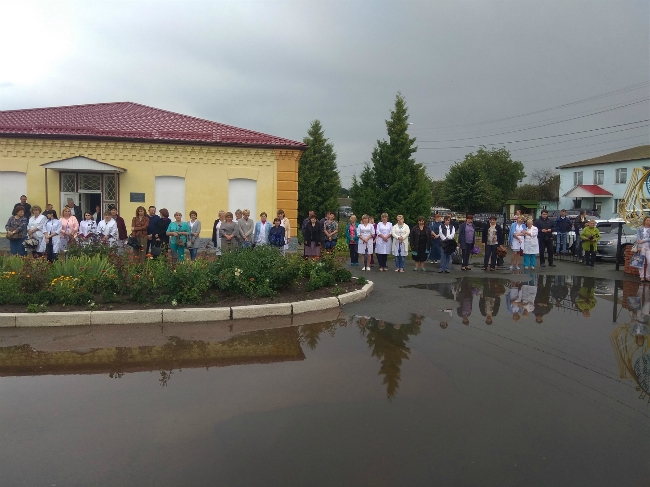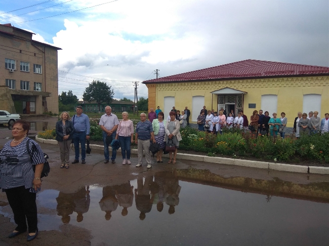 Сильна злива не завадила всім, хто знав головного лікаря Менської центральної районної лікарні Петра Хомрача, прийти на відкриття пам'ятної дошки.
