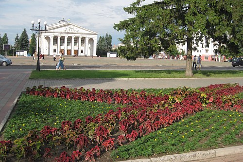 На мой взгляд, самые привлекательные клумбы в Чернигове встретим в сквере напротив мэрии и возле здания областной администрации. Там пламенеют бегония клубневая, бальзамин, колиус, герань. Мой собеседник больше всего гордится клумбами в сквере возле Екатерининки и на Аллее Героев у фонтанов, где посажены клубневая бегония, а также бегония вечноцветущая, петуния и сальвия, базилик и цинерария. Любопытно, что возле областного совета повстречаем клумбы цветов национальной символики.