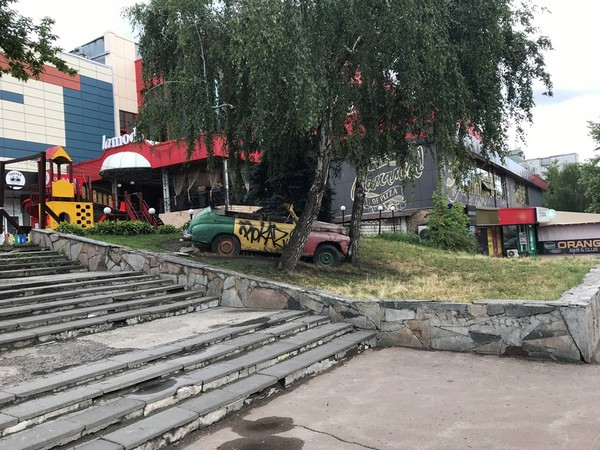 Дело в том, что данный объект не принадлежит «Мегацентру». Этот автомобиль - собственность другого здания. После проведения всех работ связанных с реконструкцией территории, мы обсудим с соседом судьбу этого объекта.