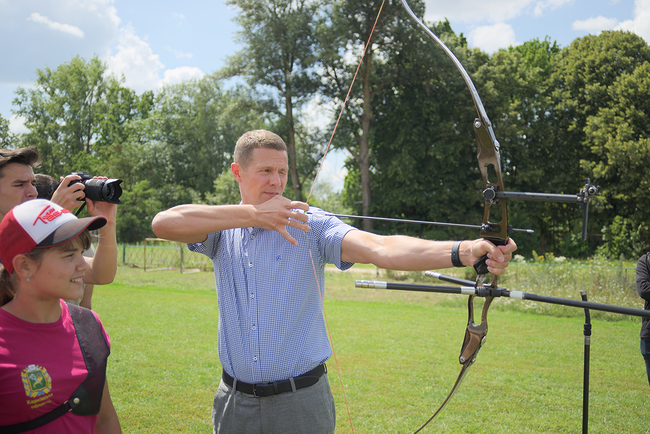 Почетные гости не только поздравили участников соревнований, но и получили мастер-класс от юных спортсменов по стрельбе из лука. Обучение оказалось не из легких.