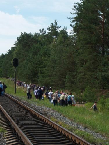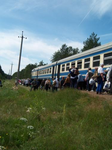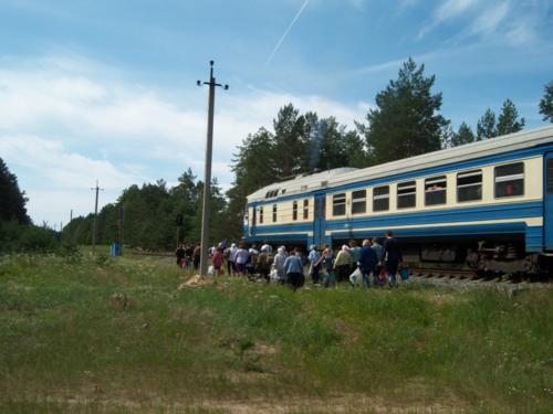За годину прибуваю на станцію “Олешня”, де сходить половина пасажирів. З дивовижною швидкістю та спецназівським умінням пенсіонери розчиняються в сосновому лісі. Їм треба поспішати, щоб встигнути повернутися назад, адже потяг відходить о 15:51.