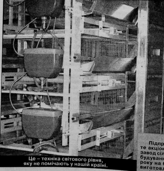Виявляється, українські птахофабрики віддають перевагу німецькому секонд-хенду. А ті, хто має створити для вітчизняних товаровиробників рівні умови, вперто не помічають ні досягнень сільмашівців, ні самого «Ніжинсільмашу». Скільки переговорів, скільки візитів чільних керівників державного рівня, а результат — нульовий. Підприємство ж не здається. Навіть створює нові, найсучасніші типи обладнання, які не мають поки що аналогів. Мова йде про 5-ярусну клітку для птахофабрик. Ну що ще сказати? Просто слів немає. А держава (Мінагро-політики, Мінагропром, Фонд держмайна) мовчить...