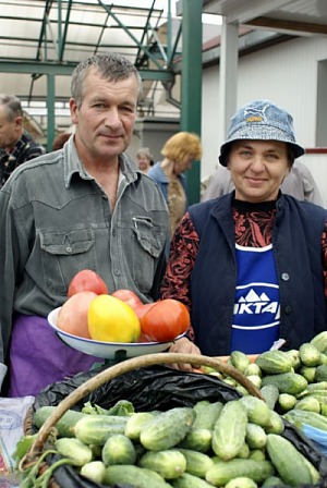 Татьяна Борисовна и Николай Григорьевич из Левковичей торгуют овощами со своего огорода.