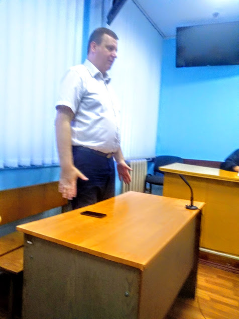 На последнее судебное заседание по его делу в Новозаводском суде пришли сам обвиняемый, прокурор - начальник отдела надзора за соблюдением законов органами СБУ и Государственной пограничной службы управления надзора в уголовном производстве и координации правоохранительной деятельности Артем Дикий и свидетель из Броваров.
